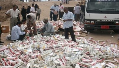 إتلاف 370 كرتون سجائر مهربة بقيمة 17مليون ريال في إب
