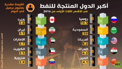 أكبر الدول المنتجة للنفط  في الأشهر الثلاثة الأولى من العام الحالي 2016م