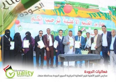 استضافت مدارس القيم الأهلية الفعالية المركزية للجودة المدرسية بمحافظة صنعاء وسط حضور رسمي كبير من القيادات التربوية بوزارة التربية والتعليم ومكتب التربية بالمحافظة والمديرية ..