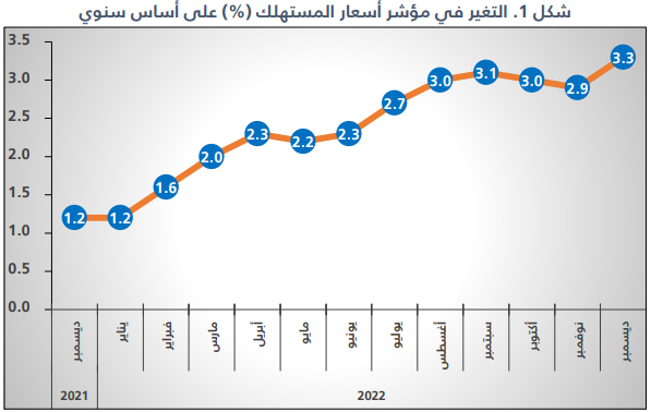 متوسط التضخم بأسعار المستهلك في السعودية يرتفع 2.5% خلال عام 2022