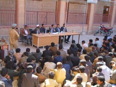 تحت شعار بالعلم نبني اليمن.. اساتذة جامعة البيضاء يحاضرون طلاب ثانوية جمعان المحورية