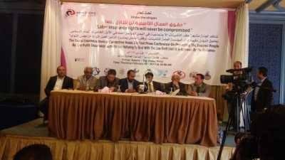 وأعلنت اللجنة في المؤتمر الصحفي الأول الذي عقدته بصنعاء تحت شعار "حقوق العمال التأمينية لن نتنازل عنها إن كافة النقابات والاتحادات العمالية وأفراد الشركات والمؤسسات والقطاعات التابعة للقطاع الخاص في البلد ترفض التعامل بمشروع قانون التأمينات الاجتماعية الصادر من اللجنة الثورية العليا ،حتى يتم إصداره من مجلس النواب صاحب الاختصاص التشريعي وفقا للدستور والقانون.