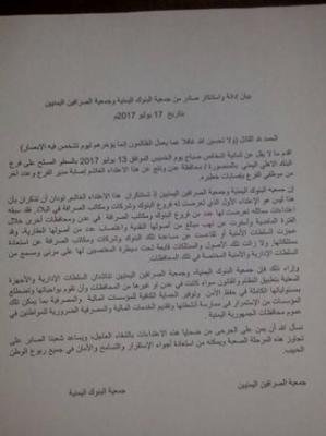 بيان ادانة واستنكار صادر عن جمعية البنوك اليمنية وجمعية الصرافين اليمنيين بتاريخ 17 يوليو 2017م