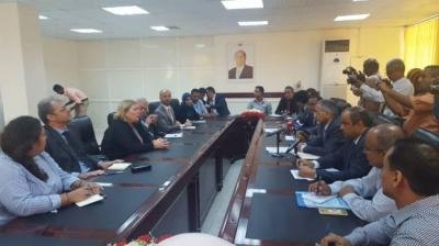 عقد اليوم الثلاثاء بمقر البنك المركزي اليمني بعدن لقاء جمع محافظ البنك المركزي اليمني الدكتور محمد زمام مع فريق الأمم المتحدة الذي يزور البنك للمرة الثانيه برئاسه منسقة الشؤون الإنسانية التابعة للأمم المتحدة لدى اليمن ليزا غراندي.