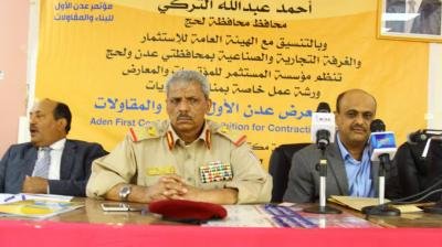 واضاف اللواء التركي: "ان «مؤتمر ومعرض عدن الاول للمقاولات والبناء» الذي ستحتضنة العاصمة المؤقتة عدن مطلع العام القادم يعد محطة وفرصة هامة، وذلك كونه يسعى لتشخيص طبيعة الواقع الاستثماري في اليمن بكل تحدياته ومشاكله والمعوقات التي تواجهه والخروج برؤية وتصورات موحدة عن الحلول والمعالجات الممكنة .. الى جانب أن عملية انعقادة تتزامن مع بدء عملية الاستقرار وتدشين مرحلة اعادة الاعمار التي بالتأكيد لن تقتصر على مدينة عدن وحسب بل ستشمل حميع المحافظات المحررة، لذلك فإننا حريصون في محافظة لحج على ان تكون مشاركتنا في هذا المؤتمر فاعلة ومؤثرة قدر الامكان".