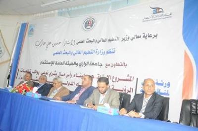 برعاية وزير التعليم العالي والبحث العلمي, في حكومة الإنقاذ الوطني بصنعاء, نظمت جامعة الرازي بالتعاون مع الهيئة العامة للاستثمار اليوم بصنعاء ورشة عمل لمناقشة المشروع الاستراتيجي لبناء رأس مال بشري نوعي يواكب تطلعات الرؤية الوطنية لبناء الدولة اليمنية الحديثة وذلك بحضور بمشاركة نخبة من الجامعات اليمنية بحضور وزير التعليم العالي والبحث العلمي الاستاذ / حسين حازب ووزير الشئون الاجتماعية والعمل عبيد سالم بن ضبيع والمهندس / خالد شرف الدين نائب رئيس الهيئة العامة للاستثمار ود / علي يحيى شرف الدين نائب وزير التعليم العالي والبحث العلمي ود / خالد الحوالي نائب وزارة التعليم الفني و د/ جميل الربيعي رئيس جامعة الرازي وعدد من وكلاء الوزارات المعنية ورؤساء الجامعات والمراكز الحكومية والأهلية وممثلين عن القطاع الخاص ومنظمات المجتمع المدني وعدد من المسئولين وخلال فعالية افتتاح الورشة التي استهلت بالقران الكريم والنشيد الوطني القيت العديد من الكلمات للجهات المنظمة للفعالية , واستعراض المشروع الاستراتيجي لبناء رأس مال بشري نوعي يواكب تطلعات الرؤية الوطنية لبناء الدولة اليمنية الحديثة، وأهدافه ومبرراته وأهميته من قبل د / تركي القباني نائب رئيس الجامعة . بعد ذلك عقدت ورشة العمل حيث توزع المشاركون فيها الى المحاور التالية :ــ