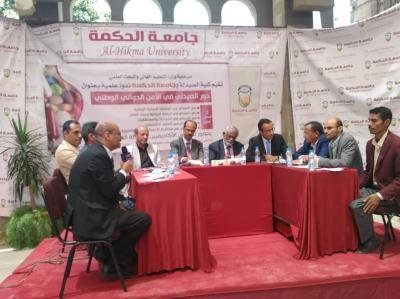 من جهتها اشادت نائبة رئيس جامعة صنعاء للدراسات العليا الدكتورة نجيبة مطهر بدور كلية الصيدلة بجامعة الحكمة في تنظيم هذه الندوة وأهمية الامن الدائي والدور المعول على الصيادلة وتلبية احتياجات السوق المحلية .